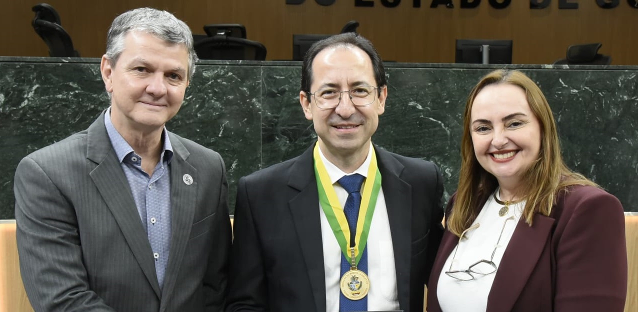 A homenagem integrou uma solenidade que reconheceu personalidades com contribuições relevantes para o desenvolvimento econômico, social e institucional de Goiás. A iniciativa foi proposta pelo deputado Virmondes Cruvinel, que destacou o compromisso do Legislativo em valorizar trajetórias que impactam positivamente a sociedade goiana.